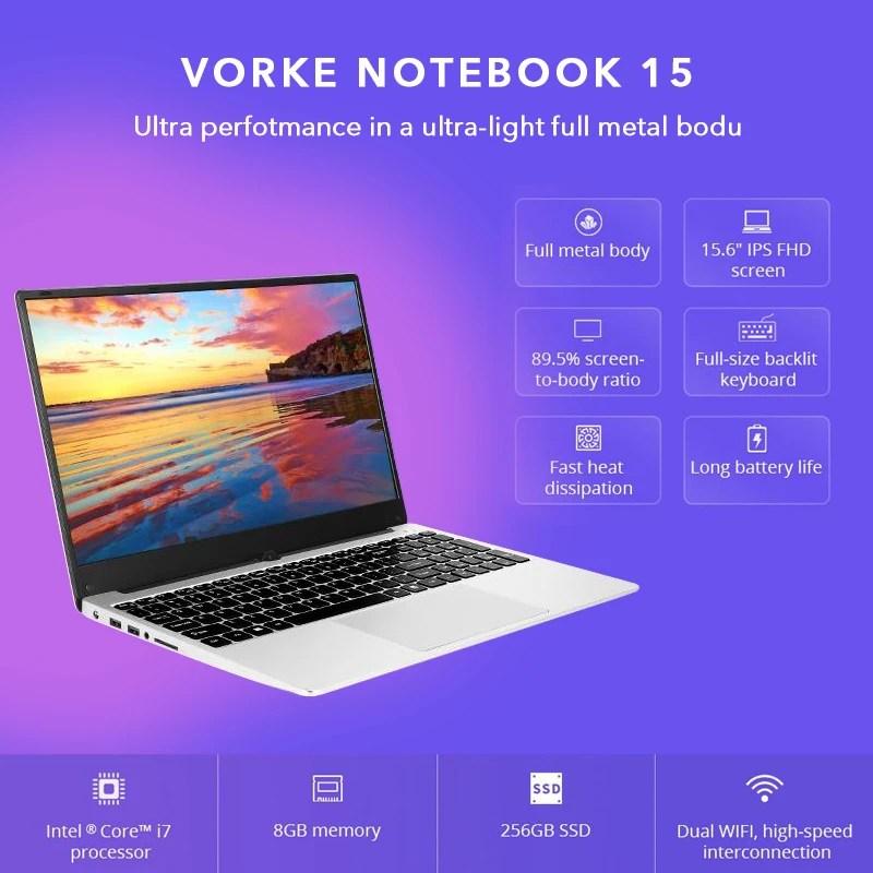 prefix] VORKE Notebook 15 Ultrathin SSD Laptop Intel Core i7-4500U i5-8250U 15.6'' Screen 1920*1080 Windows
